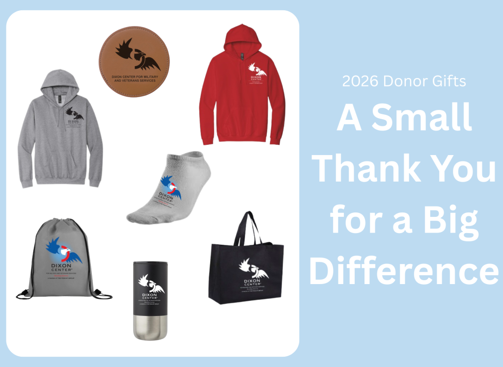 Donors to Dixon Center for Military and Veterans Services give because they believe deeply in our mission, the work we do, and the communities we serve. While their generosity is never given with expectation, our team believes that small, thoughtful tokens of appreciation can go a long way in expressing our gratitude and honoring that trust.